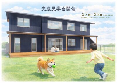 お施主様のご厚意により、2日間限定で完成見学会開催します! ✅ 今回の主役は「愛犬への優しさ」 ・足腰を守る「全室すべらない床」 ・1年中どこでも快適な高断熱&高気密 ・自然の光と風を取り入れるパッシブ設計 言葉では伝え […]